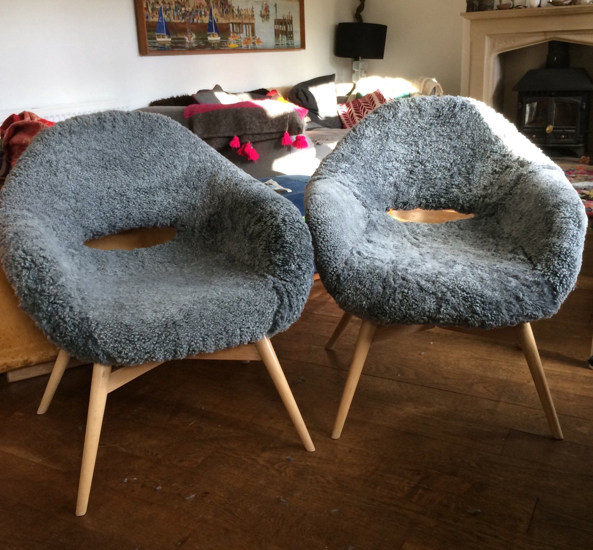 I absolutely love these chairs. Adding padding and covering them in sheepskin has cosied up the chair whilst maintaining its iconic shape. It can be made to order in a variety of colours.